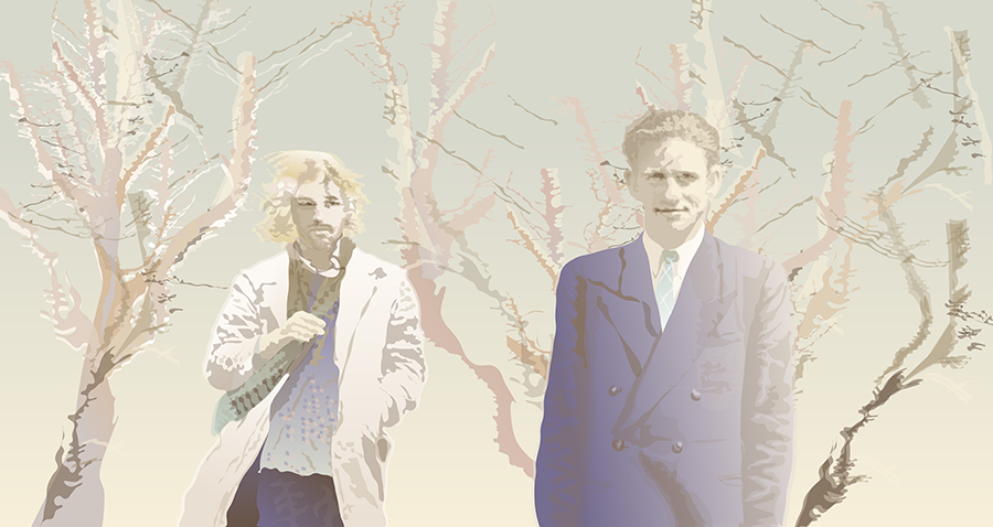 Vater und Sohn, beide als junge Männer im Wald